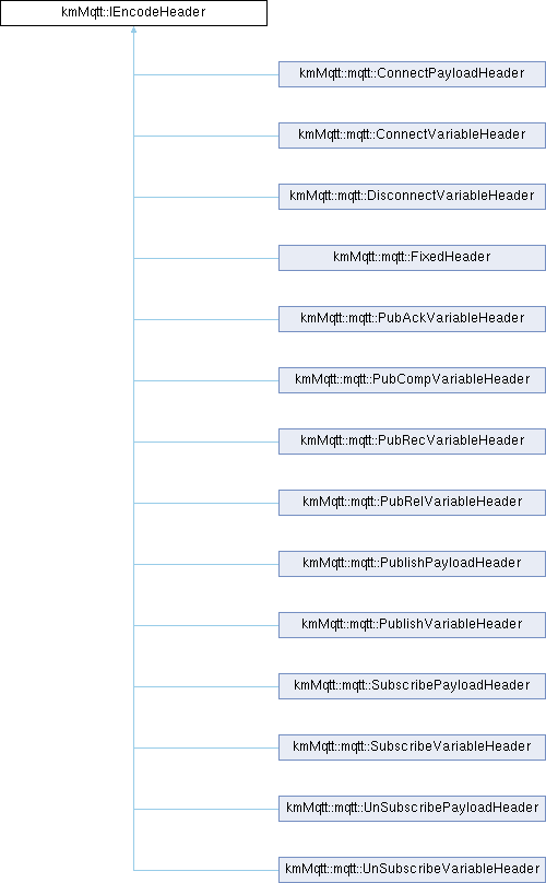 Inheritance diagram for kmMqtt::IEncodeHeader: