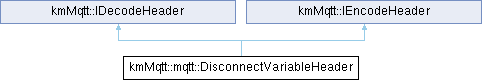 Inheritance diagram for kmMqtt::mqtt::DisconnectVariableHeader: