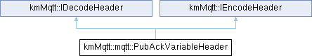 Inheritance diagram for kmMqtt::mqtt::PubAckVariableHeader: