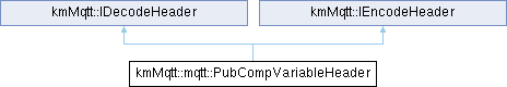 Inheritance diagram for kmMqtt::mqtt::PubCompVariableHeader: