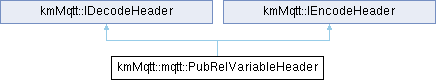 Inheritance diagram for kmMqtt::mqtt::PubRelVariableHeader: