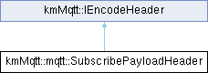 Inheritance diagram for kmMqtt::mqtt::SubscribePayloadHeader:
